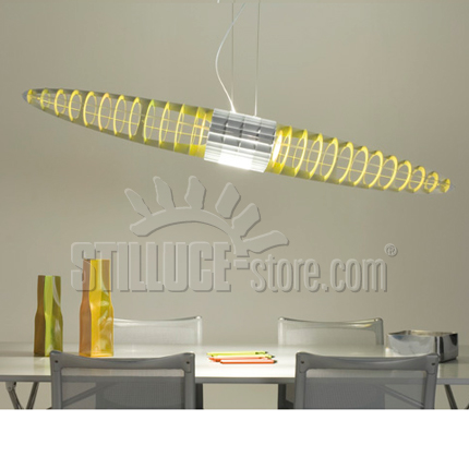 Luceplan Queen Titania lampada a sospensione in alluminio. E’ possibile utilizzare una coppia di filtri in policarbonato colorati. A richiesta kit di sospensione con contrappeso.