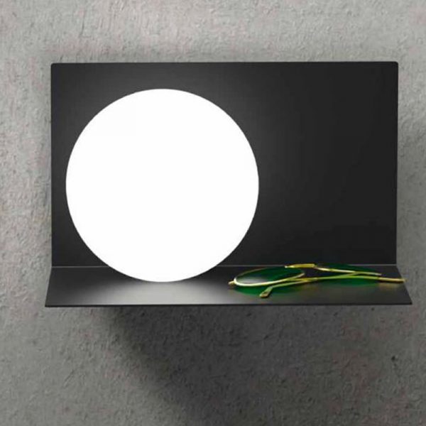 Marchetti Balance lampada da parete destra, Designer Solido. Struttura in metallo e diffusore in vetro soffiato bianco. Linea pulita e minimale nella forma, la sfera in vetro soffiato bianco latte, rimane in equilibrio sulla struttura. Dimensioni cm L. 25 P16 cm. h. 15 cm. Utilizza n. 1 lampadina attacco E14 alogena eco o LED esclusa. Finiture in oro galvanizzato satinato, bianco o nero. Balance non è solo una lampada ma anche una piccola mensola ideale per la camera, ai lati del letto. Codice prodotto: 056.030.12