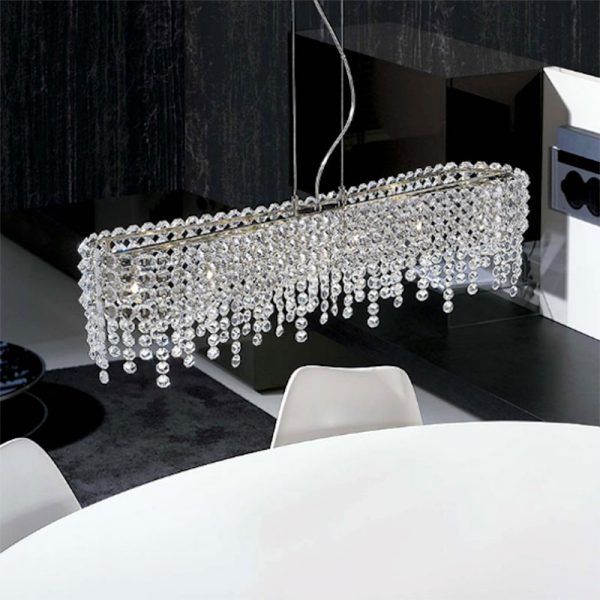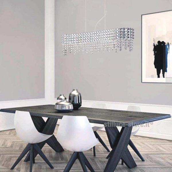 Marchetti Cometa lampada a sospensione con diffusore composto da tanti piccoli cristalli dalla forma ottagonale, ideale in ambienti sia classici che moderni.