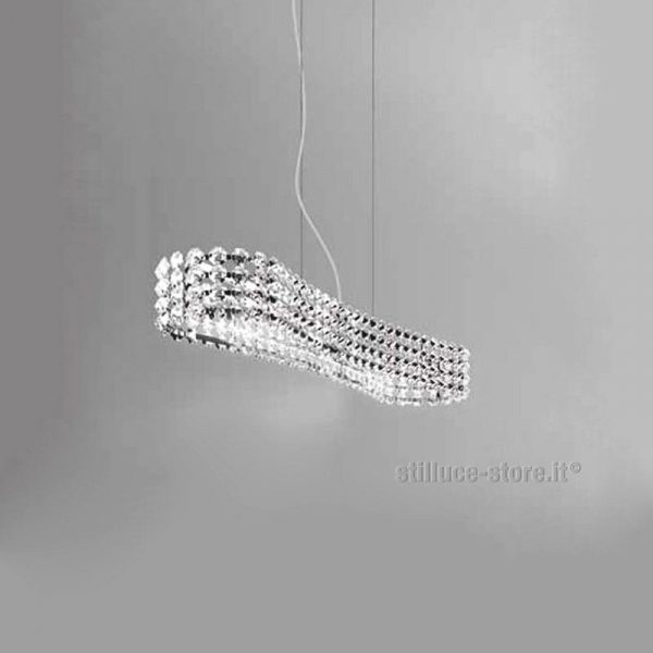Marchetti Cometa SP lampada a sospensione, Marchetti Design. Struttura in metallo nichel lucido e diffusore in cristalli ottogonali. Predisposta per n. 6 lampadine alogene eco G-9 48W o led – escluse. Piccoli brillanti compongono il diffusore donando alla luce un effetto sfarzoso, curioso e magico. La sospensione diviene sicuramente la protagonista indiscussa dell’ambiente in cui viene installata, sia pubblico o privato, Cometa saprà donare eleganza e stupore. Perfetta come sospensione sopra il tavolo del soggiorno. Codice prodotto 050.294.06B