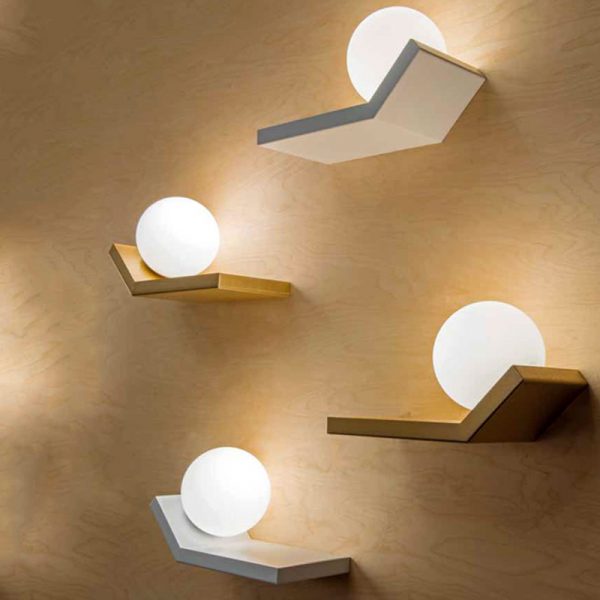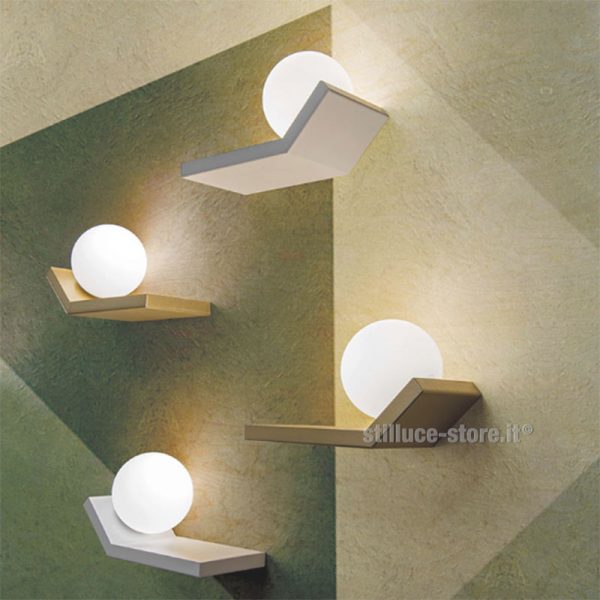 Marchetti Scivolo lampada da parete destra, designer Marchetti Lab. Struttura in metallo con diffusore in vetro soffiato bianco. Colori: bianco, nero, oro satinato. Lampadina attacco E14 alogena eco o LED esclusa. Bellezza e purezza di forme con la sfera in vetro soffiato bianco latte che dà la giusta luce alla geometria di Scivolo. La particolare struttura prevede un piano libero da poter sfruttare come appoggio, ideale ai lati del letto come abat jour da parete. Disponibile anche con USB, a richiesta. Codice prodotto: 056.029.01