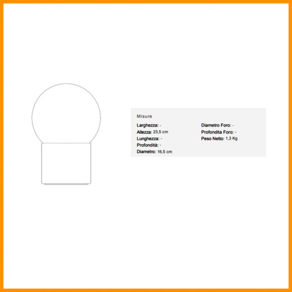 • Dimensioni: h. 23,5 cm. - d. 16,5 cm.