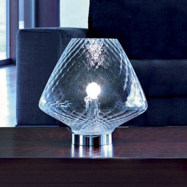 Mazzega 1946 Forme (Snifter) lampada da tavolo, design di Christophe Pillet. Struttura in cromo lucido e diffusore in vetro lavorato a mano. Una collezione di lampade originali, ricavate da un bicchiere da cognac unito all’antica tecnica muranese “ballotton”. Ideale per valorizzare un ambiente se adagiato sopra un comodino o un tavolo. Codice prodotto: SNITAMBG
