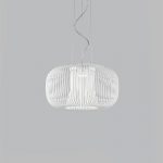 Metallux Nest lampada a sospensione, Studio Tecnico Metal Lux. Struttura in metallo cromato e diffusore in vetro disponibile in tre colori: cristallo rugiada, ambra rugiada o fumè rugiada. Con il rosone multiplo si possono creare composizioni personalizzate unendo fino a tre corpi luce Nest, anche in diversi colori. Utilizza n. 1 lampadina attacco E27 alogena eco o LED.