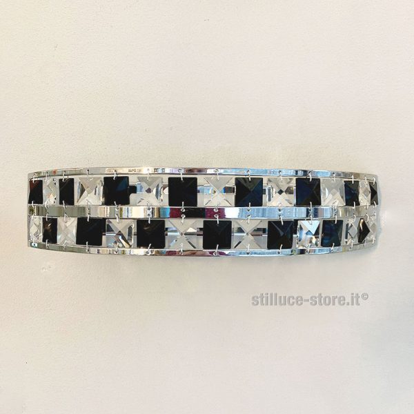 Micron Queen lampada a parete; C. R. M. design. Struttura in cromo lucido e diffusore in cristallo/ cristallo nero. Una lampada da parete elegante che sa valorizzare ogni ambiente impreziosendo sia uno stile classico che moderno. Lampadina attacco R7S alogena eco o LED (esclusa). Il prodotto è originale e garantito da Stilluce-Store, imballo originale. DISPONIBILITA’: n. 4 LAMPADA CRISTALLO NERO