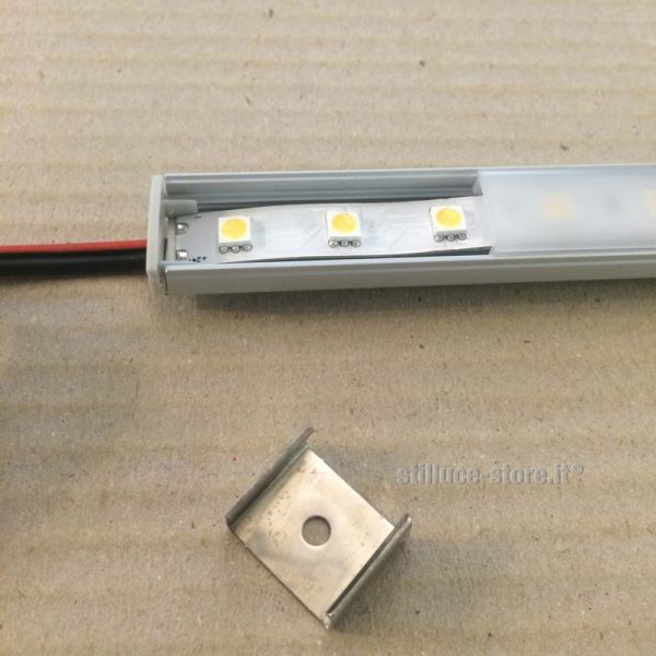 Novalux Barra LED a centimetro contenente striscia STRIP LED perfoermance 14,4W al metro IP20 24V per l’installazione a parete o soffitto, “veletta”.Ogni barra LED viene fornita con:striscia STRIP LED IP20 14,4W – 1880lm. al metro (sezionabile ogni 50 mm. per multipli di 7 led) CRI>80 4000K preparata nelle lunghezze di cm. 50 – 100 – 150 – 199 cm. (lunghezza variabile di circa 0,5 / 1 cm. in più). Per misure superiori a cm. 200 la barra verrà fornita con un giunto applicato sulla misura inferiore. (Esempio: barra cm. 130 + cm. 200. Verrà fornita una barra da cm. 130 con foro per il cavo da un lato e un giunto applicato dall’altro lato per innestare la barra da cm. 200). Striscia da posizionare successivamente a barra giuntata. Profilo dissipante IP40 (obbligatorio) L.17 x H. 9 mm. “Profiled H.9” nella misura scelta (cm. 50 -100 -150 -199 cm.) colore grigio alluminio, schermo di protezione in PMMA nel colore opale con inserimento a scatto, testate di chiusura e staffe di fissaggio. Con questo tipo di profilo di altezza 9 mm. otteniamo una buona diffusione di luce con effetto puntinato. Cavo in dotazione per il collegamento all’alimentatore di lunghezza variabile, inizio striscia ca. cm. 15, tagli successivi ca. 45 cm. Escluso alimentatore remoto da ordinare separatamente nel modello standard – (dimmerabile solo a richiesta). Non hai trovato quello che cercavi? Siamo a disposizione per preventivi personalizzati, contattaci! Specifica la lunghezza esatta, la quantità delle barre e il tipo di accensione, puoi utilizzare più barre con un solo alimentatore e con una sola accensione.