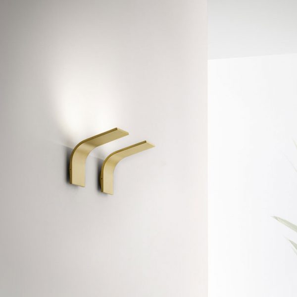 Panzeri App lampada LED da parete piccola; Q2 designer. Materiale: profilato di alluminio estruso verniciato nel colore bianco, ottone satinato,spazzolato e verniciato nel colore titanio. LED a tensione di rete (220V) che non necessita di driver. LED 18W 1431lm. 3000K Ra90 incluso con speciale protezione da sovratensioni e coperchio trasparente di protezione. Una lampada dal designer semplice e pulito, disponibile anche in una dimensione più grande. Codice prodotto: A09801.001.0406 bianco – A09819.001.0406 ottone satinato – A09830.001.0406 titanio.