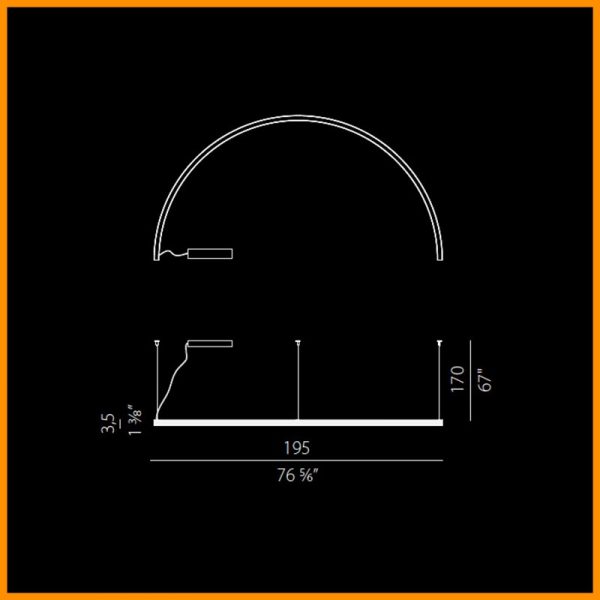 • Dimensioni: larghezza 195 cm - altezza 3,5 cm. + cavo h. max. 500 cm