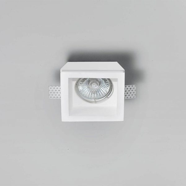 Panzeri Faretto incasso parete / soffitto serie Invisibili, un faretto in gesso a scomparsa totale, atossico e naturale, ecocompatibile. Viene fornito di serie con portalampada GU10 dove è possibile utilizzare lampadina 220/230V alogena eco 40W o lampadina LED, non serve trasformatore. Dimensioni faretto: esterno 7,8 X 7,8 cm. h. 5 cm. (con lampadina h. circa 14,5 cm.) – foro incasso 8,8 x 8,8 cm. – faretto finito installato dimensione visibile 6 x 6 cm. Faretto CE – IP20 – Classe II – Per incasso in laterizio / calcestruzzo utilizzare cassaforma con microregolazione per allineamento cod. XM0998 (dimensioni 85x85x155 mm.)