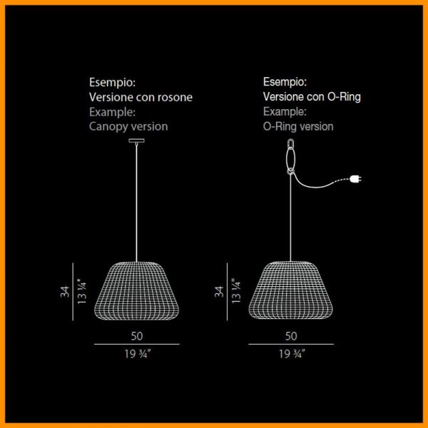• Dimensioni: D. 50 cm. - H. 34 cm. + cavo