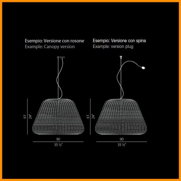• Dimensioni: D. 90 cm. - H. 61 cm. + cavo
