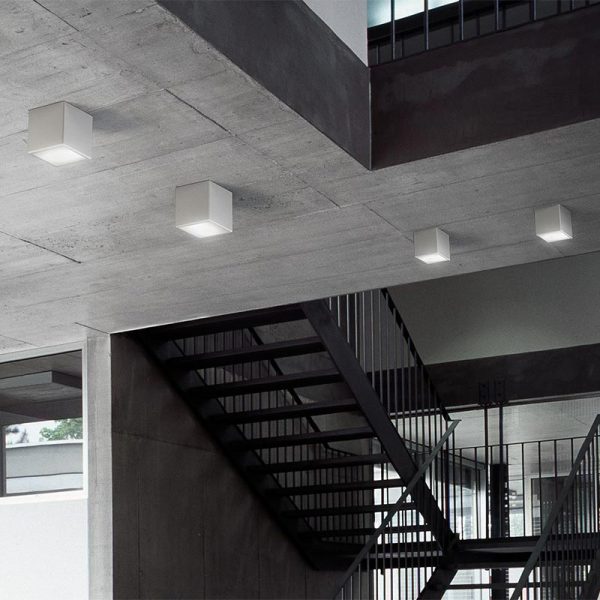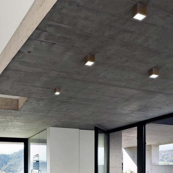 Panzeri Three 15 lampada LED da parete o soffitto con struttura in alluminio verniciato poliacrilico bianco, nero, bronzo e ottone satinato con vetro satinato. ideale per piccoli spazi, ingresso, corridoio.