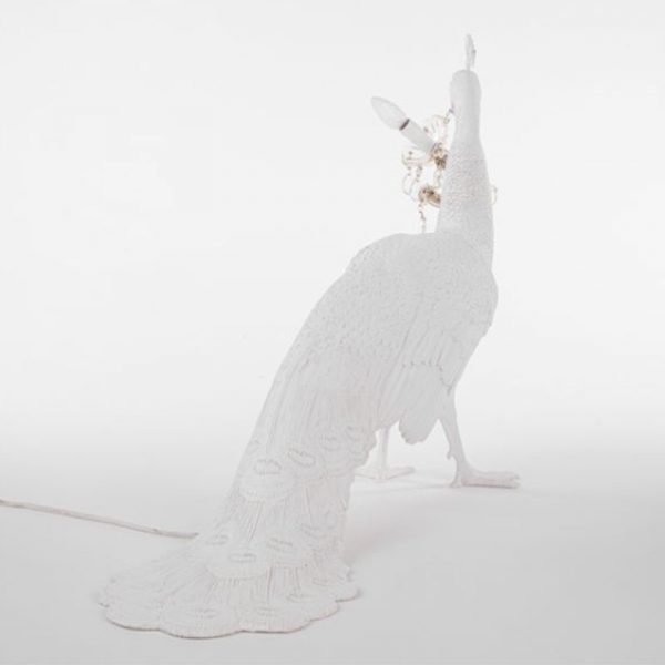 Seletti Peacock Lamp lampada da terra Marcantonio designer. Un’altro bellissimo animale entra a far parte della famiglia Seletti, un grande pavone in resina. Nel becco il pavone con la sua aria regale stringe il braccio di un lampadario antico con dei cristalli. Un’originale oggetto d’arredo per i tuoi ambienti. Codice prodotto 14672
