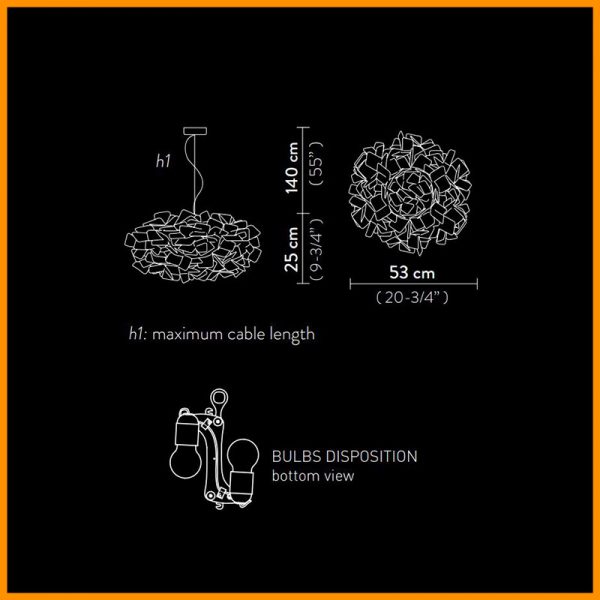 • Dimensioni: d. 53 cm h. 25 cm h.max 140 cm
