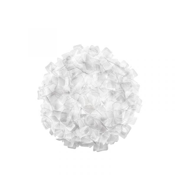 Slamp Clizia Mama Non Mama lampada da parete / soffitto d. 78 cm, Adriano Rachele designer. Diffusore in cristalflex. Mama Non Mama è la nuova proprosta di Slamp per la famosa lampada Clizia. Questa collezione è ispirata alla purezza della natura; petali leggeri di questo bouquet luminoso portano negli interni una ventata di aria fresca. Il diffusore è realizzato a mano tramite un particolare sistema di incastri che ricorda il momento in cui capita di staccare i petali di una margherita per interrogarsi sul proprio amore.