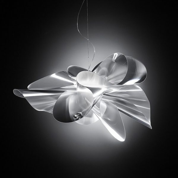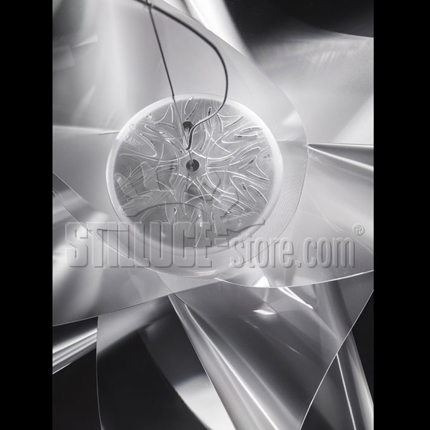 Slamp Etoile lampada a sospensione large prisma; Adriano Rachele designer. Materiali: diffusore in lentiflex. Lampadina: LED tot. 21W 220V – 2830lm 2700K (warm white) CRI90 inclusi. Ricorda la gonna di una ballerina, che si solleva e si piega seguendo le movenze di una danza. Disponibile in due misure, per ambienti domestici o più scenografici. Codice prodotto: ETO78SOS4003LE000
