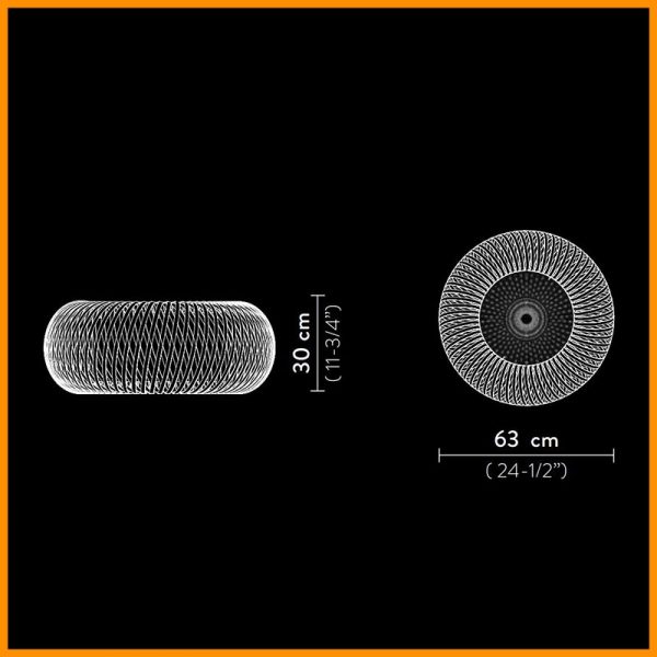 Slamp Kalatos plafoniera d. 63 cm, Elisa Giovannoni designer. Struttura in tecnopolimeri di Slamp. Colori disponibili: nero opaco con interno dorato e bianco con dettagli lentiflex trasparente. Il design di Kalatos si ispira all’arte dell’intreccio rivisitata in chiave high-tech. Una plafoniera molto importante che racchiude in se’ tutta l’esperienza di Slamp; ideale per ambienti grandi, sia lavorativi che domestici.