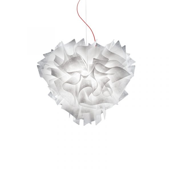 Slamp Veli Couture Large lampada a sospensione nella nuova finitura couture con cavo rosso, perfetta in qualsiasi ambiente domestico. A richiesta cavo trasparente.