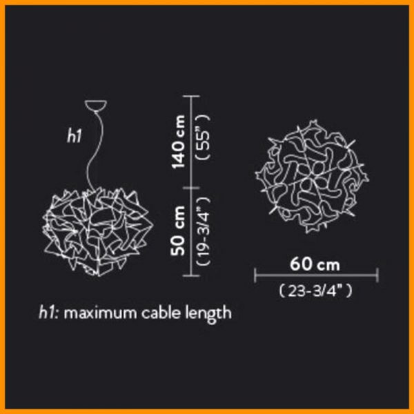 • Dimensioni: Diffusore d. 60 cm - Altezza diff. 50 cm - H. max 190 cm