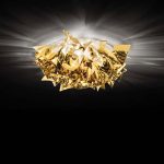 Slamp Veli lampada da parete o soffitto con diffusore in goldflex. Disponibile nel colore gold.