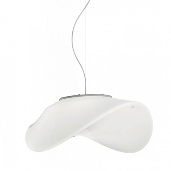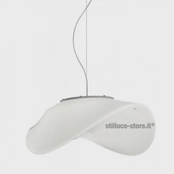Vistosi Balance lampada a sospensione, design di Pio e TIto Toso, 2011. Montatura  in bianco con diffusore in vetro bianco lucido. La traiettoria delle orbite planetarie intorno al sole ispira questa collezione, che ripropone il movimento creato dall’armonia e dall’equilibrio di forze invisibili con vetro e luce. Predisposta per n. 2 lampadine attacco E27 alogena eco 70W o LED – escluse. Una sospensione originale, disponibile in tre dimensioni e nel modello a plafoniera, perfetta per ambienti sia moderni che classici. Codice prodotto: BALANCESPME27