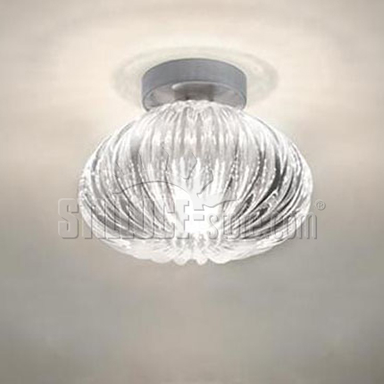 Vistosi Diamante lampada da soffitto realizzata con un processo esclusivamente artigianale. Disponibile con diffusore cristallo o ambra.