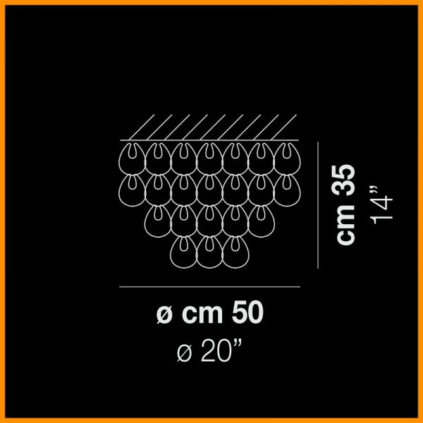 Vistosi Giogali plafoniera d. 50 composta da 125 ganci in cristallo interamente realizzati a mano.