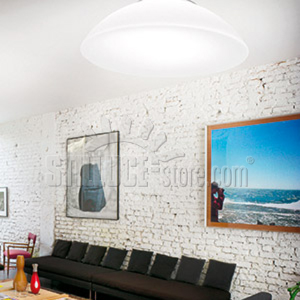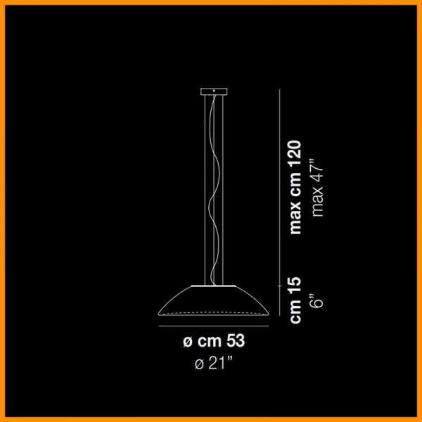 Vistosi Infinita lampada a sospensione D. 53 cm, Renato Toso, Noti Massari & Associati 2009. Diffusore in vetro bianco, ideale per illuminare la zona pranzo. Codice prodotto: INFINITASP53