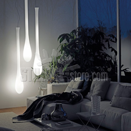 Vistosi Lacrima lampada a sospensione. Collezione di lampade a sospensione in vetro bianco lucido soffiato e lavorato a mano libera.