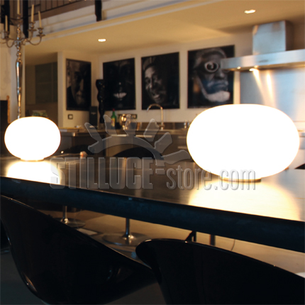 Vistosi Lucciola lampada da tavolo d. 48 cm con diffusore in vetro soffiato satinato. Interruttore on/off su filo.
