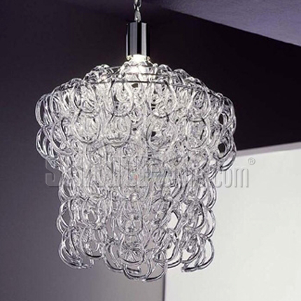 Vistosi Minigiogali lampada a sospensione d. 50 cm; design Angelo Mangiarotti 1967. La versione ridotta di Giogali, una Collezione di lampade composte da elementi in cristallo interamente realizzati a mano e componibili. Modello con n. 3 portalampada E27 standard.