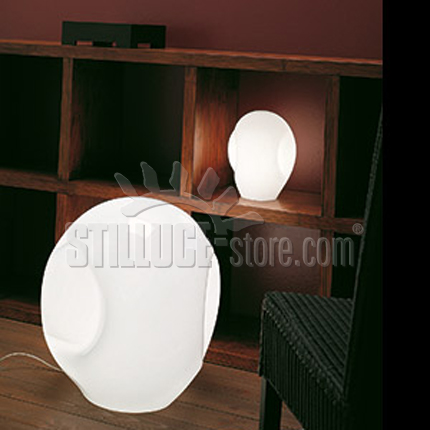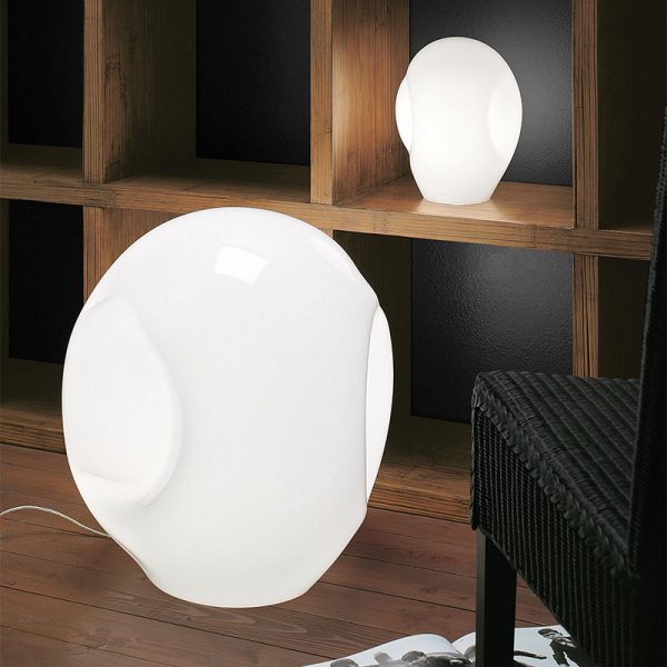 Vistosi Munega lampada tavolo in vetro soffiato bianco lucido. Munega lampada da tavolo grande h. 55 cm.
