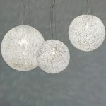 Vistosi Poc lampada a sospensione d. 25 cm, design di Barbara Maggiolo, 2003. Struttura in nichel satinato. Vetro bianco e membrana in cristallo. L’esclusivo impiego della membrana interna genera, come una lente, l’effetto di una sfera composta da due metà. La resa di ogni membrana è diversa, creando per ciascun pezzi dinamiche variazioni d’intensità di luci e colore sulla superficie. Una sospensione originale che rappresenta in tutto e per tutto l’esperienza e la bravura di Vistosi nella lavorazione del vetro. Codice prodotto: POC SP 25 G9