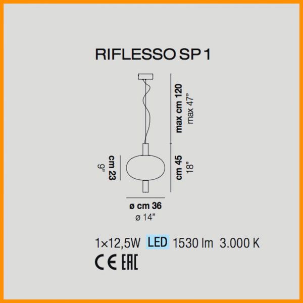 • Dimensioni: d. 36 cm. - h. 45 cm. + cavo 200 cm. (pred. x decentramento)